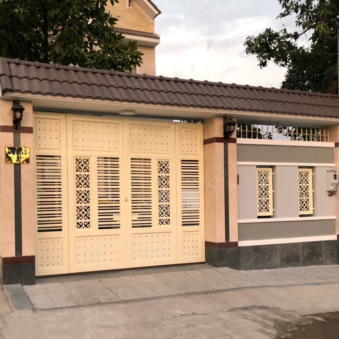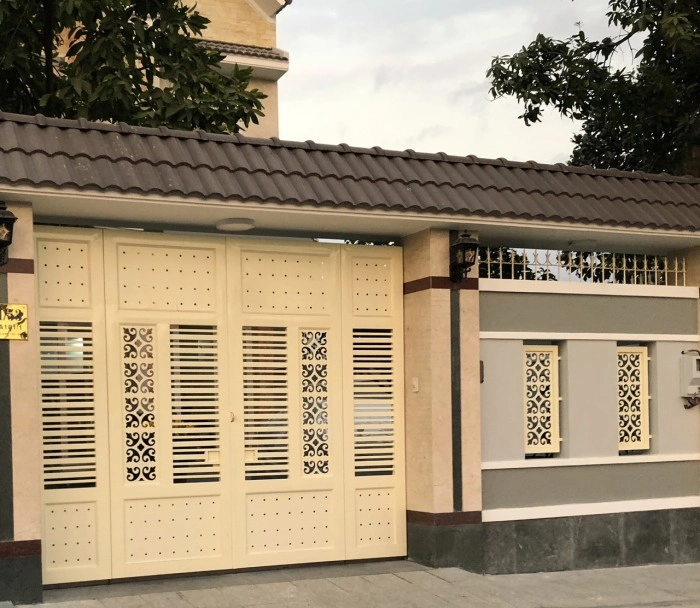 Màu sơn kem nhạt phối cùng hệ tường và hàng rào giúp tổng thể hài hòa, phù hợp với các ngôi nhà có kiến trúc nhẹ nhàng hoặc phong cách bán cổ điển. Thiết kế 4 cánh mở rộng tối đa không gian và tăng khả năng thoáng khí, nhưng vẫn đảm bảo an toàn và riêng tư.