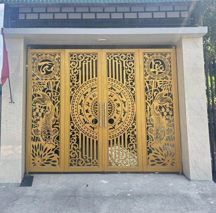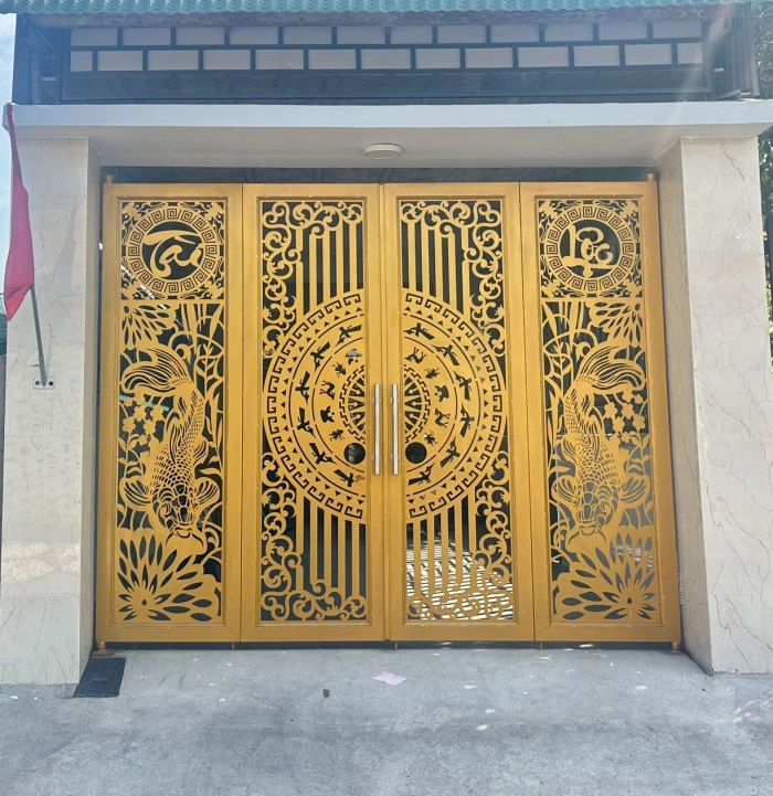 Cổng sắt CNC KD280 – trống đồng kết hợp cá chép hóa rồng, thiết kế mới lạ giàu ý nghĩa