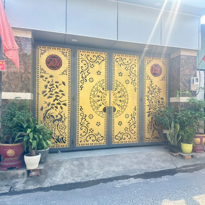 Cổng được sơn tách biệt 3 màu làm nổi họa tiết CNC là điểm nhấn