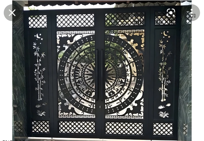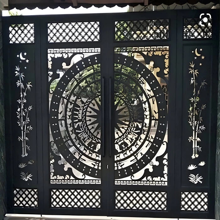 Cổng sắt CNC KD276 – họa tiết trống đồng và hoa văn mới thanh lịch