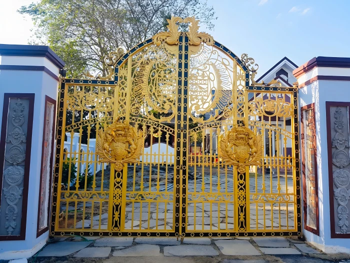 Cổng sắt CNC KD278 – trống đồng tinh xảo, phối màu sáng sang trọng