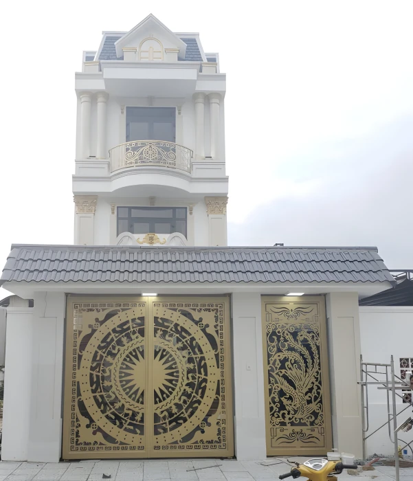 Cổng sắt CNC KD278 – trống đồng tinh xảo, phối màu sáng sang trọng