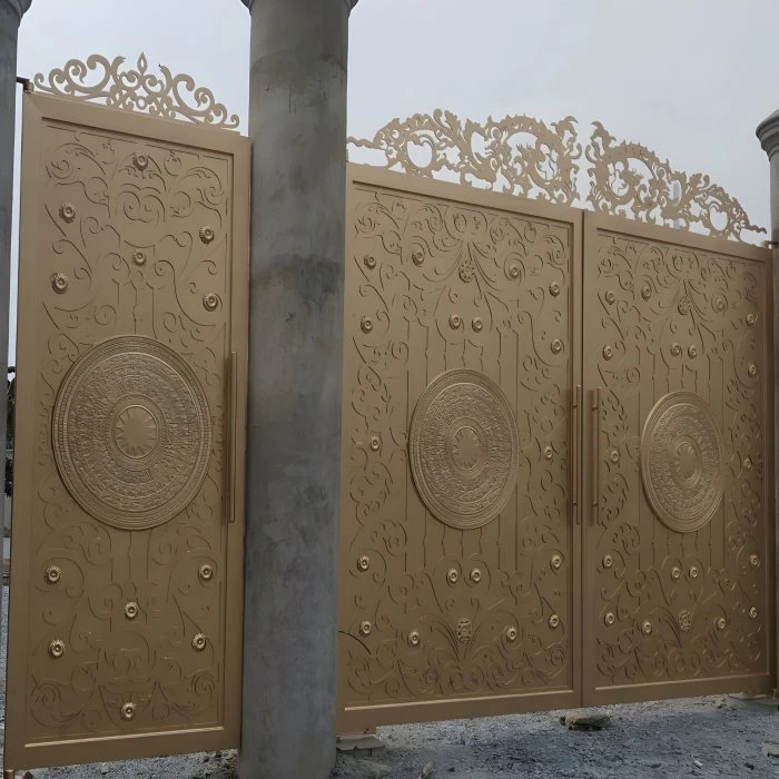Cổng sắt CNC KD278 – trống đồng tinh xảo, phối màu sáng sang trọng