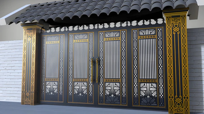 Cổng sắt CNC cao cấp hoa văn hình ngôi sao và họa tiết cách điệu – KD286