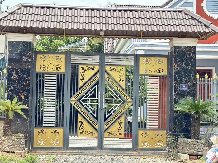 Cổng sắt CNC KD276 – họa tiết trống đồng và hoa văn mới thanh lịch