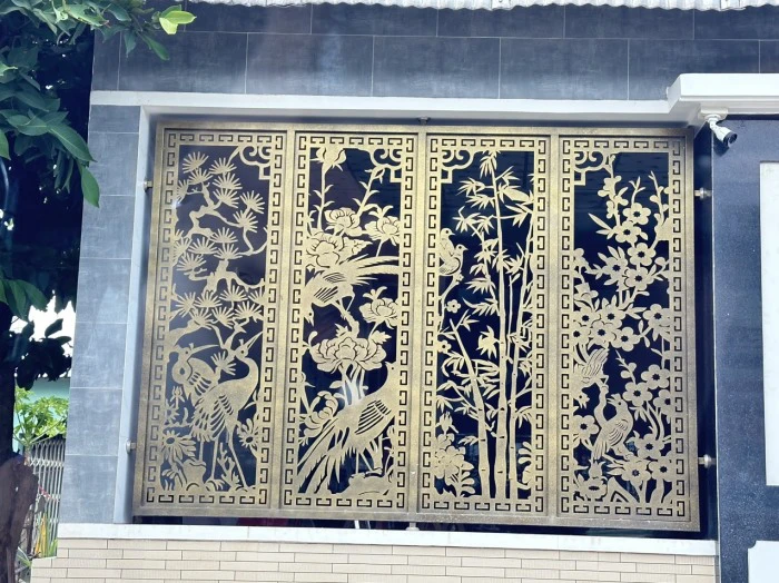 Cổng sắt CNC KD276 – họa tiết trống đồng và hoa văn mới thanh lịch