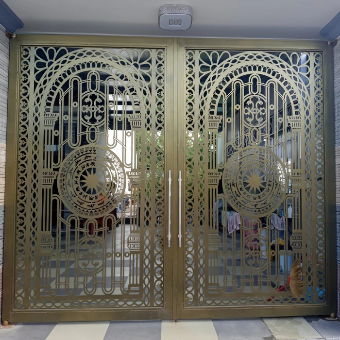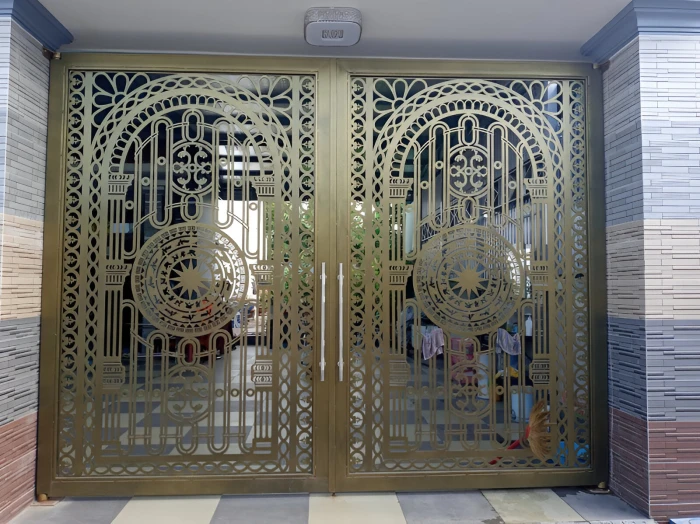 Cửa thép sử dụng thép tấm CNC cắt laser với họa tiết trống đồng làm điểm nhấn. Cửa được thiết kế chỉnh chu kết hợp nhiều lớp hoa văn đan xen với nhau, tạo sự thông thoáng nhưng không kém phần chắc chắn. Được kết hợp từ thép hộp mạ kẽm và thép tấm 6mm nên sẽ luôn bền vững theo thời gian. Cửa rất phù hợp cho nhà phố hoặc kiểu nhà hiện đại có bề ngang từ 4-6m. Đây là một trong những mẫu hoa văn mới nhất và đẹp trong thời gian gần đây.