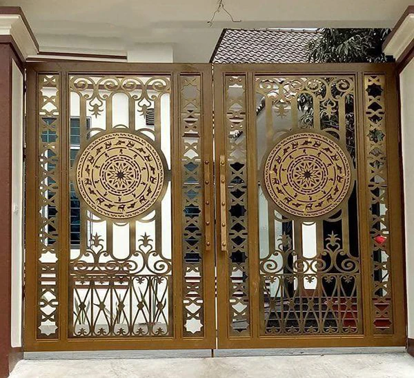 Cổng sắt CNC KD276 – họa tiết trống đồng và hoa văn mới thanh lịch