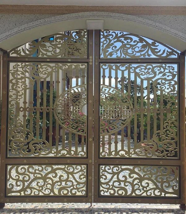 Cổng sắt CNC KD276 – họa tiết trống đồng và hoa văn mới thanh lịch