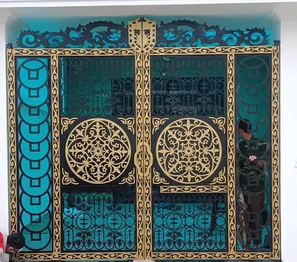 Cổng sắt CNC KD276 – họa tiết trống đồng và hoa văn mới thanh lịch