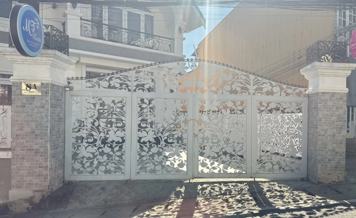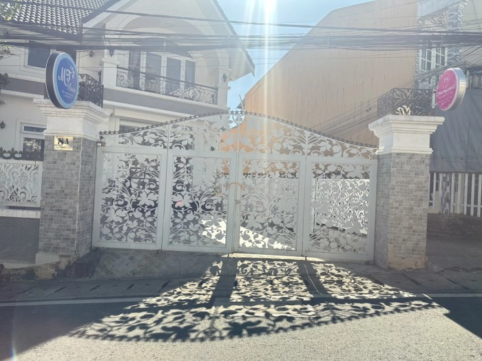 Cửa được kết hợp công nghệ cắt CNC laser thép tấm tạo hình theo chi tiết thiết kế của anh chủ nhà. Ý tưởng về cánh cổng và vòm cổng cây và lá như khu vườn xung quanh phù hợp với cảnh quan của TP Đà Lạt. Cửa được sơn màu trắng mang lại vẻ sang trọng và phù hợp với thiết kế biệt thự của căn nhà. Cửa cắt bằng CNC laser nên mang lại đường cắt sắc nét và không bavia. Sản xuất nhanh chóng để đáp ứng yêu cầu cao về tiến độ. Do sử dụng thép hộp mạ kẽm và thép tấm CNC laser nên cửa rất chắc chắn và đảm bảo độ bền và an ninh