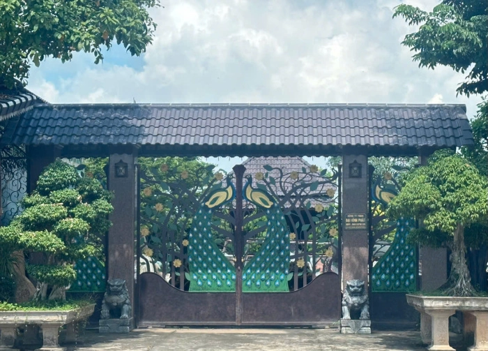 Cổng sắt CNC KD276 – họa tiết trống đồng và hoa văn mới thanh lịch