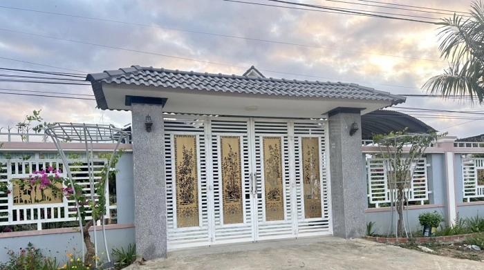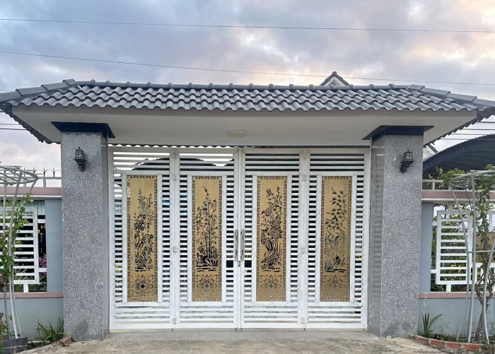 Cổng sắt CNC KD278 – trống đồng tinh xảo, phối màu sáng sang trọng