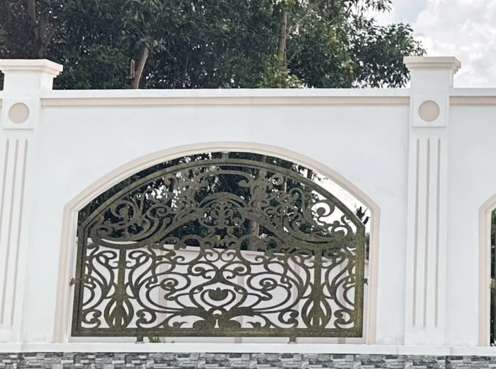 Cổng sắt CNC KD278 – trống đồng tinh xảo, phối màu sáng sang trọng